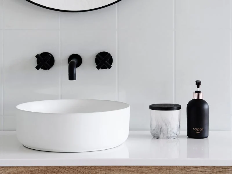 Matte black taps look stunning against white or light-coloured sinks, natural wood and concrete surfaces.