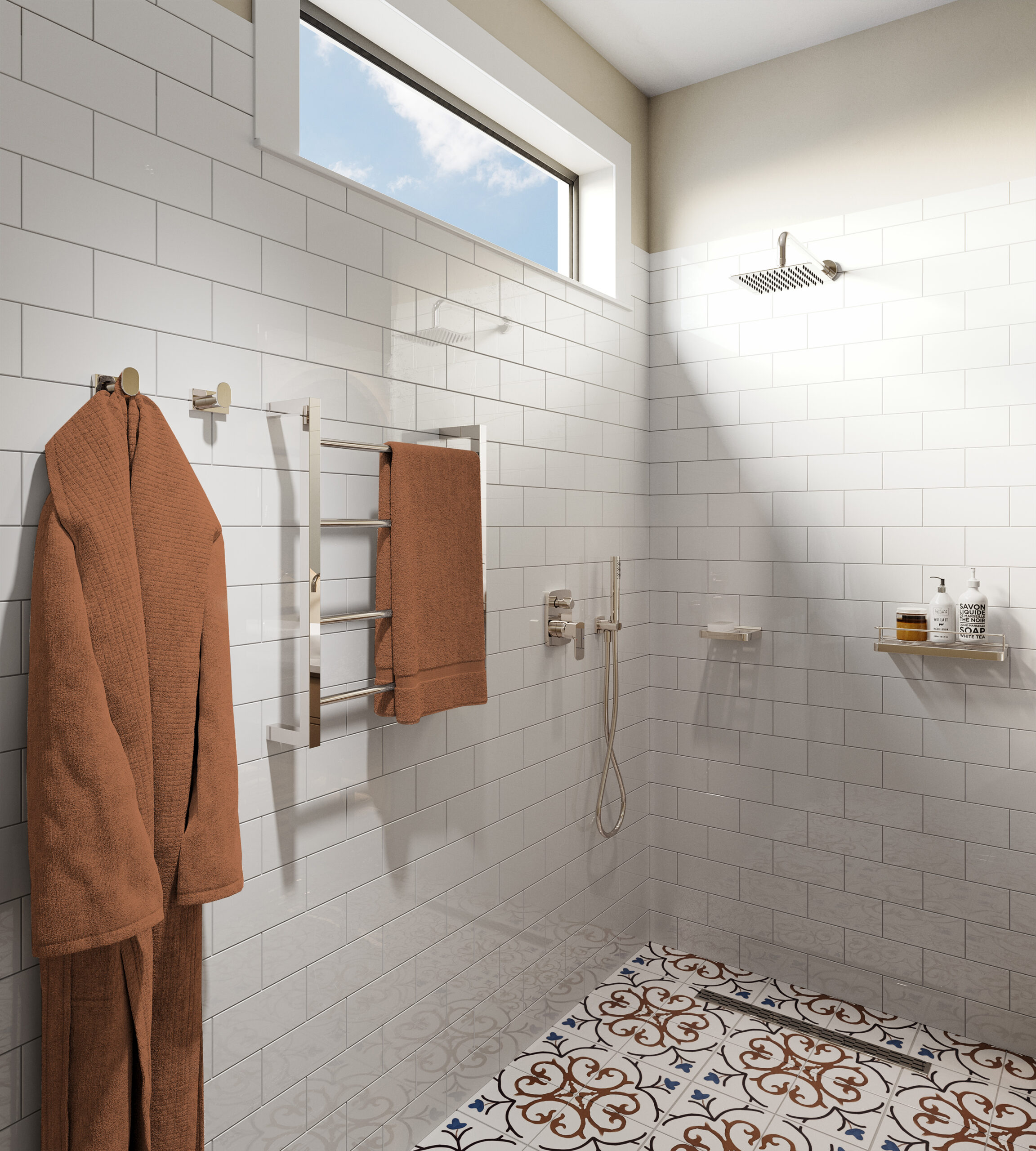 Choose a finish that complements or contrasts tastefully with your tiles, countertops and cabinetry.
