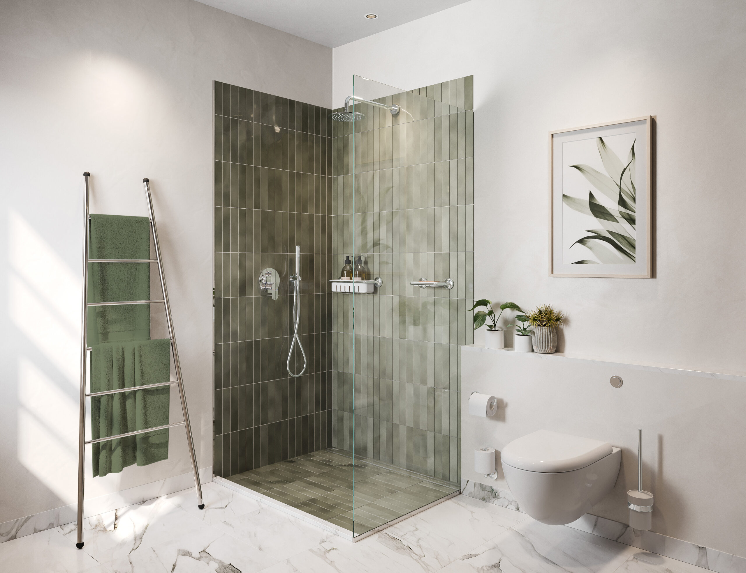 Walk-in showers are a top choice for modern bathrooms. They’re practical, stylish and great for accessibility. Frameless glass panels create a sense of openness, especially in smaller bathrooms, and tiled shower wall adds a sleek, polished finish.