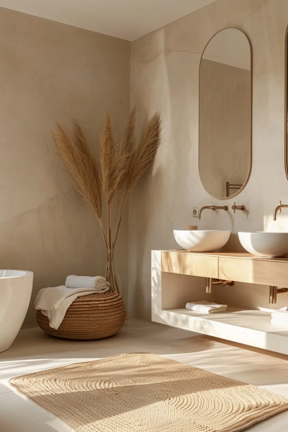 Choose clean finishes, minimal décor and natural touches like wood or stone.