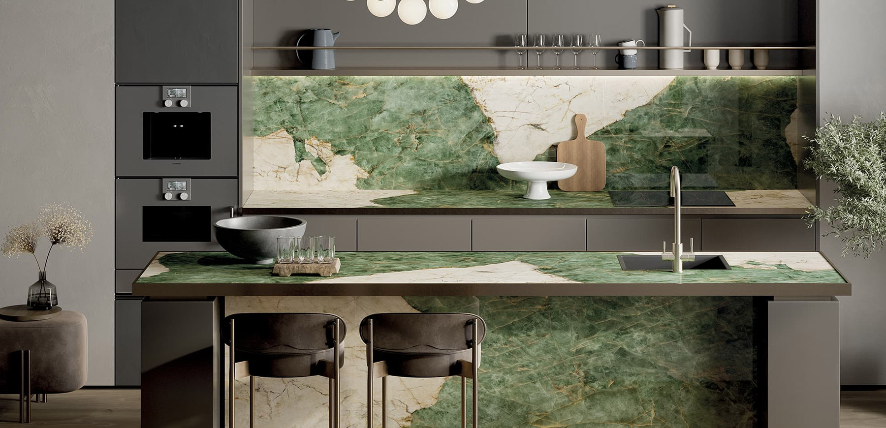 Tip: If your countertop has a busy pattern or bold veining, go for more subtle tiles to avoid visual clutter. On the other hand, if your countertop is plain or neutral, you can have more fun with tile colours, textures or patterns.