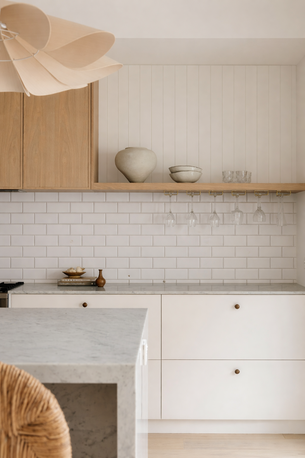 Warmth prevents a kitchen from feeling lifeless and adds depth without relying on trends.