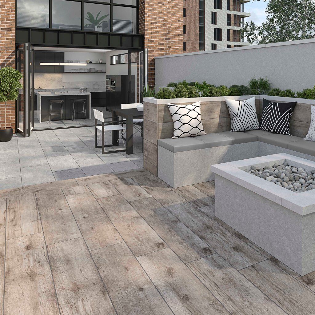 Wood-look tiles give the warm aesthetic of timber without the maintenance issues caused by fluctuating temperatures.