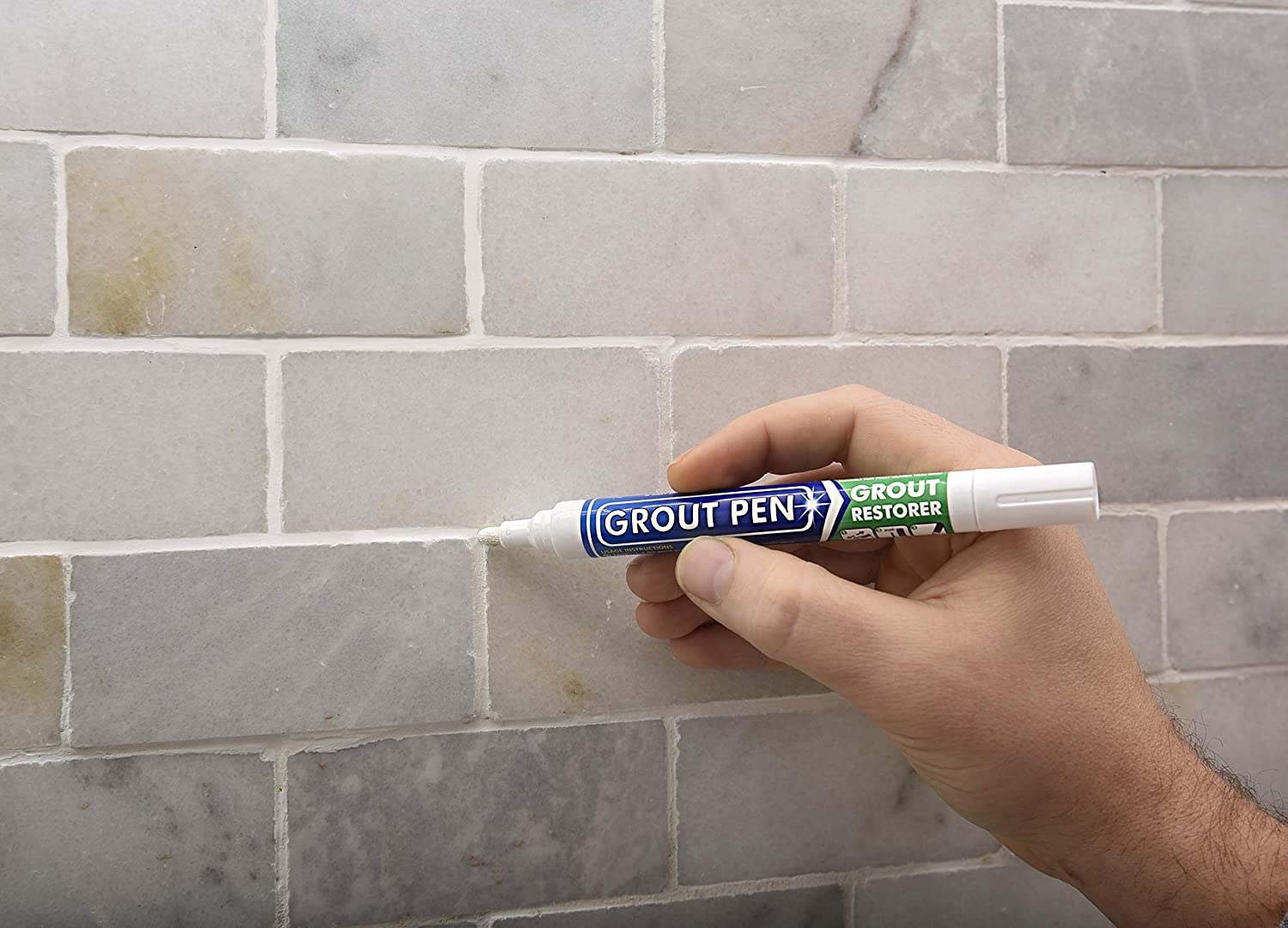 Use grout pens to freshen up yellowed grout or match it to your style. Add tile stickers to individual tiles to create a custom pattern or pop of colour.