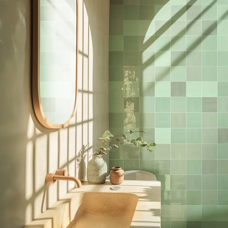 When working with spring colour palettes, the key is balance. Choose a base shade for your main surfaces like floors and walls, then add layers of colour through tiles, accessories and furniture. If you’re unsure where to start, focus on one room and build from there. Bathrooms and kitchens are great spaces to experiment with colour because tiles make a big impact.