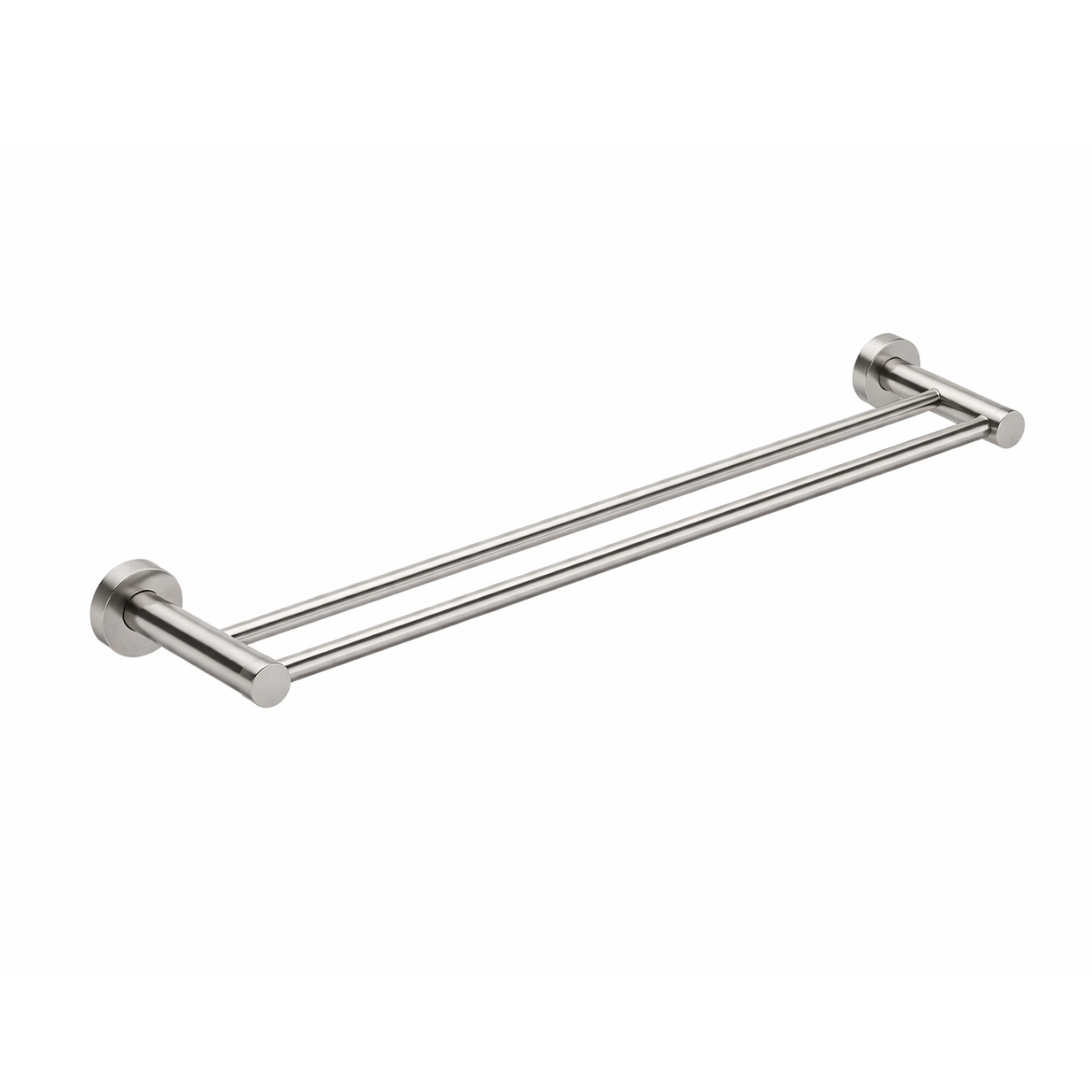the bathroom butler – 4600 double towel rail in brushed stainless steel features a satin finish and sturdy steel construction for long-lasting use. measuring 650 mm, the dual-rail design provides extra room for hanging multiple towels, making it ideal for shared or family bathrooms.