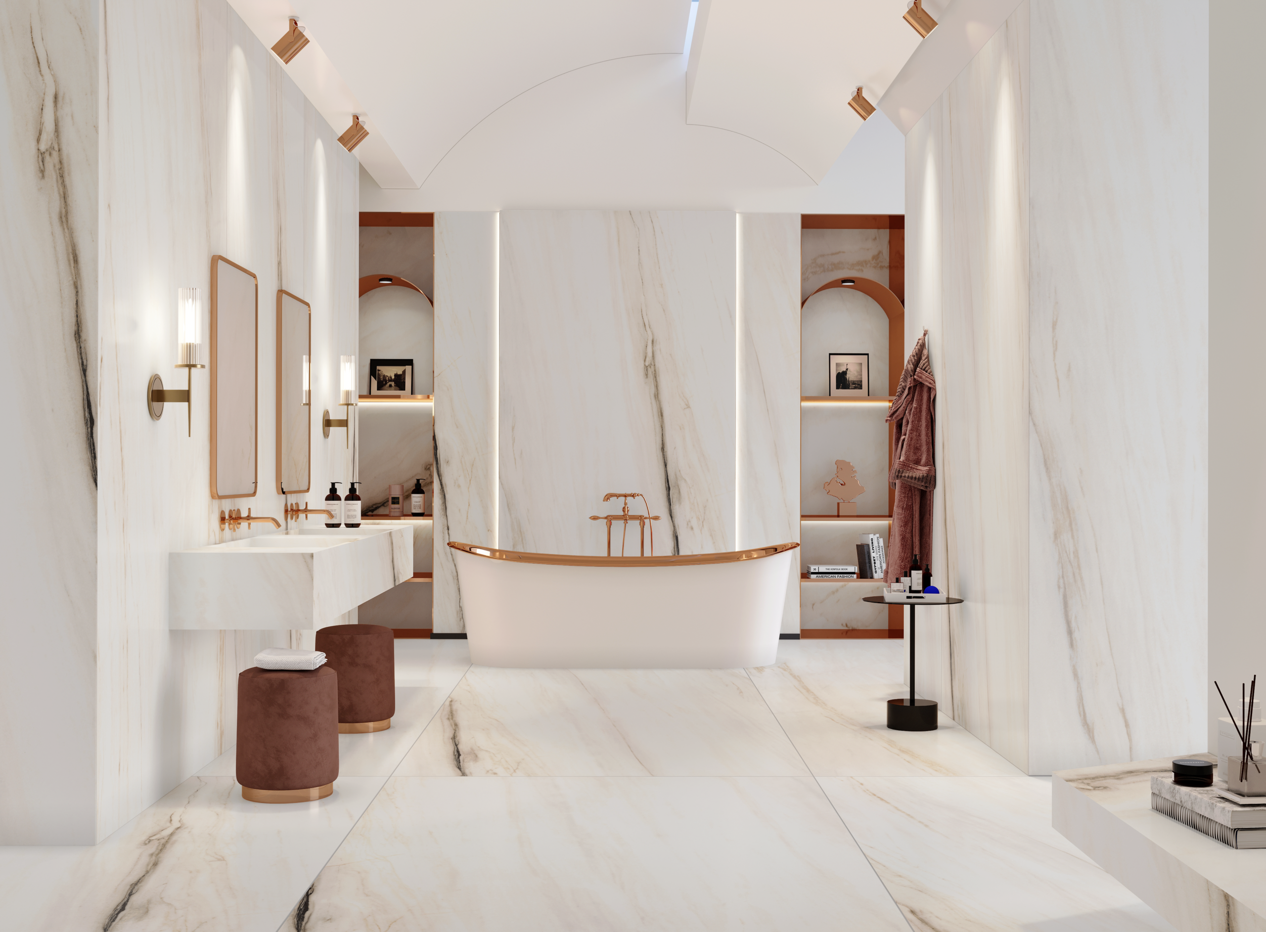 the impressive 1200 x 2400 mm large format allows for fewer grout lines creating a seamless and sophisticated finish that enhances the sense of space. suitable for both wall and floor applications this tile offers dependable performance with timeless visual appeal.