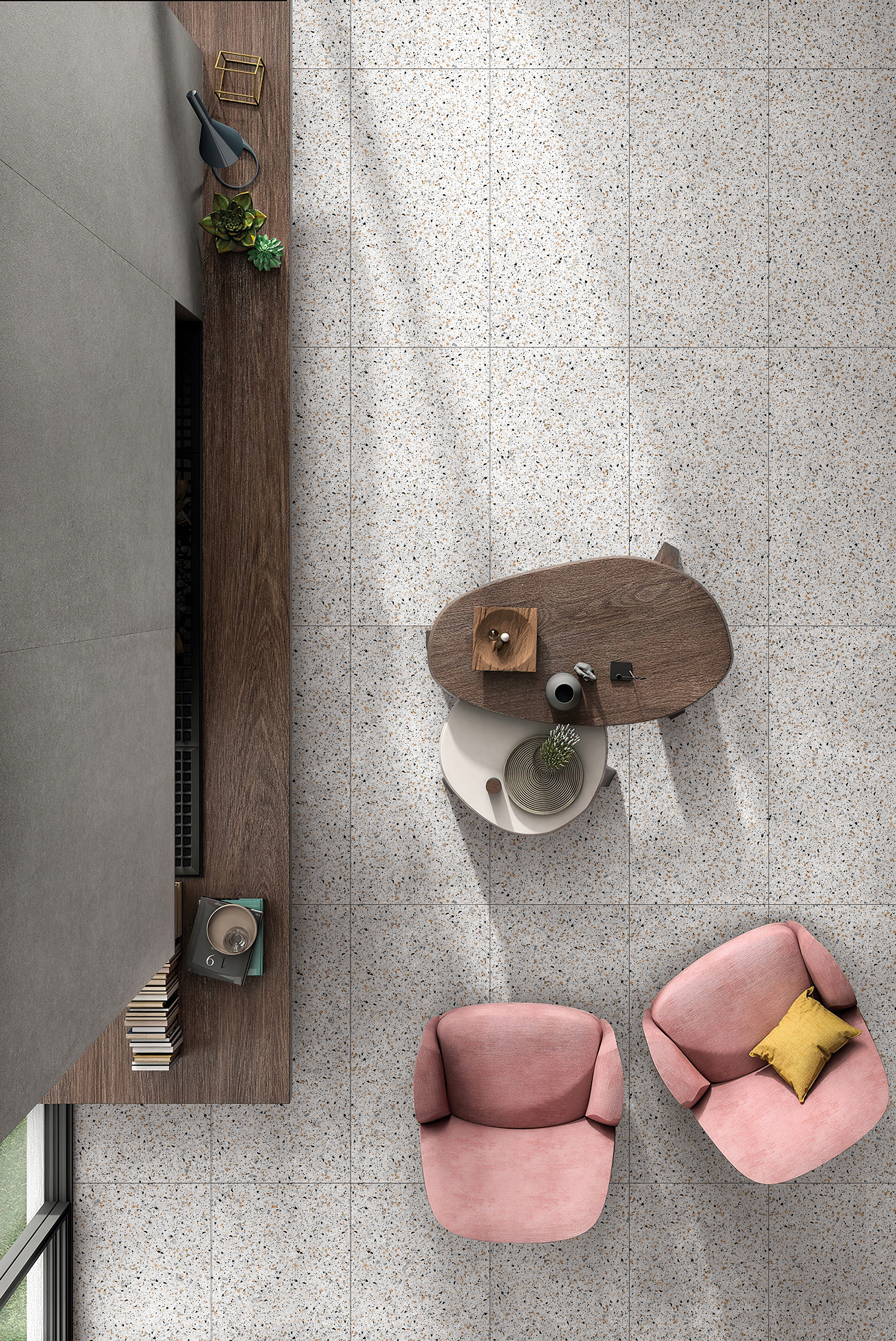 the carnival white stoneware tile from sinotile features a terrazzo-inspired design with a clean white base, adding a modern and airy feel to any space. its 600 x 1200 mm size is ideal for creating seamless layouts in contemporary interiors. designed for floor applications, this tile is perfect for both residential and commercial settings.