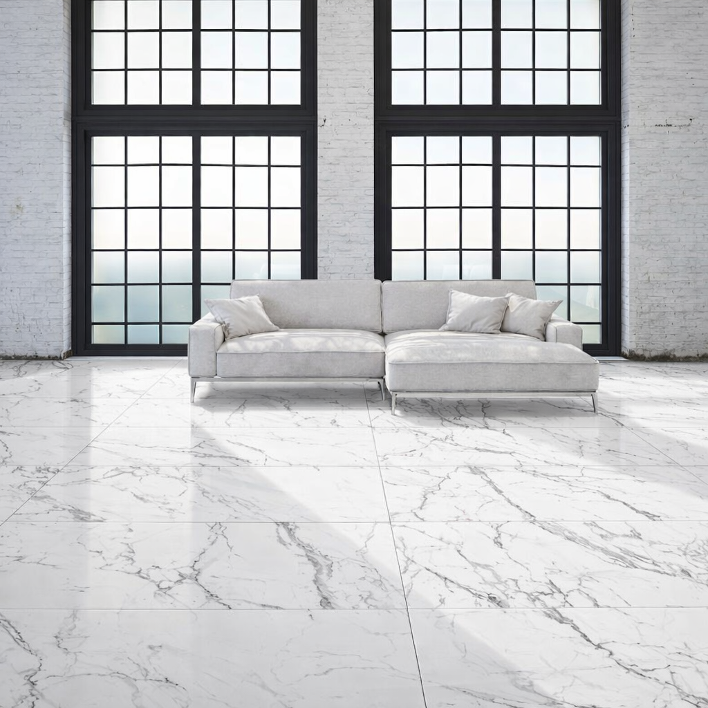 bring timeless elegance into your space with the white bocciardata carrara matt glazed porcelain tile. this marble look porcelain tile captures the beauty of natural carrara marble with a soft matt finish creating a bright and sophisticated feel.