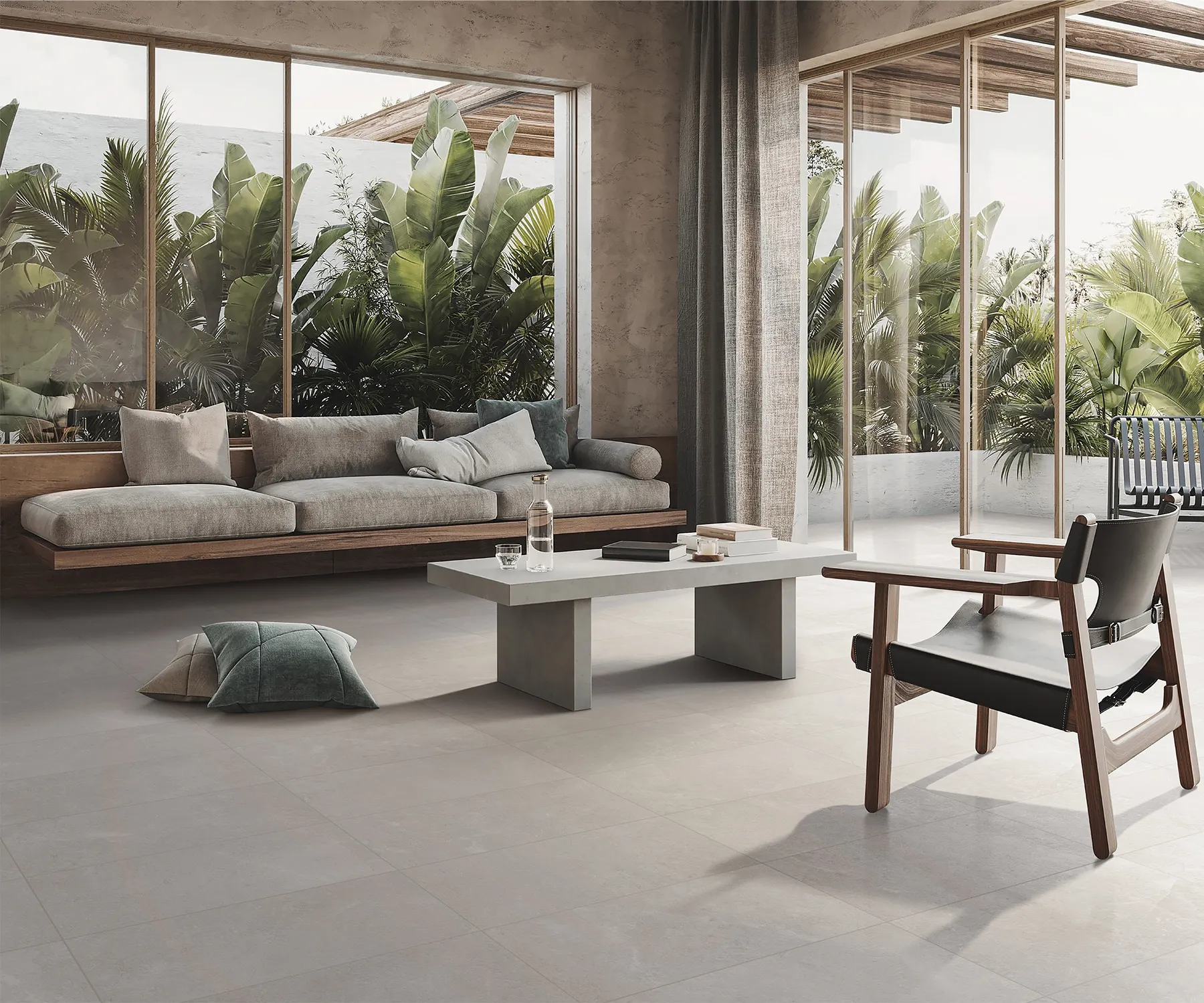 Floor tiles laid in a grid or balanced pattern can make an open-plan space feel more grounded and connected.